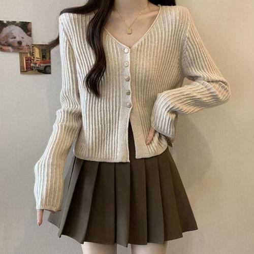 [옷자락]여자 봄맞이 물결 스카시니트 단추 여리 긴팔 가디건