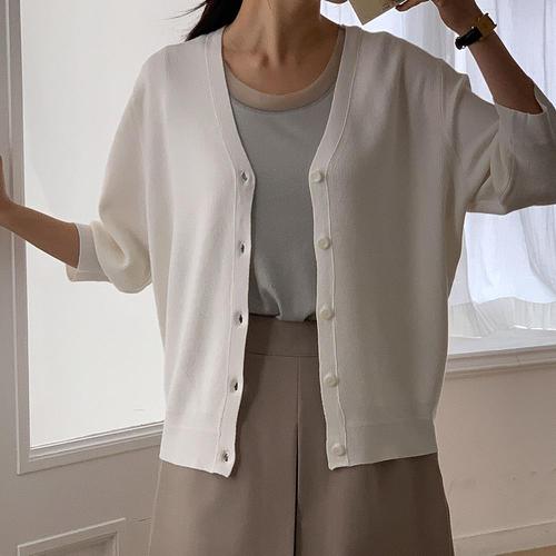 [옷자락] 여자 여리 베이직 파스텔니트 잔골지 브이 8부 가디건
