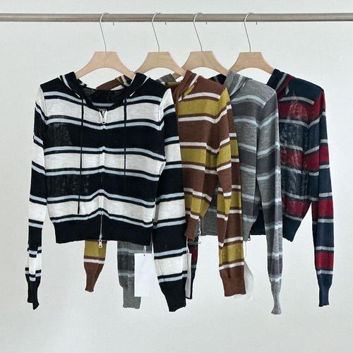 [옷자락] 여성 시스루 배색 단가라 후드집업 간절기용