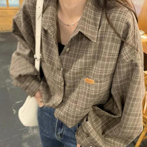 데일리 여성 루즈핏 봄 가을 체크 남방 여자 모던 트렌디 간절기 체형 커버 오버핏 셔츠 (2장이상추가할인)