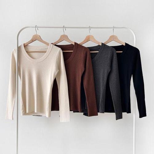 [다잇템]여자 슬림핏 골지 부드러운 롱슬리브 울 니트
