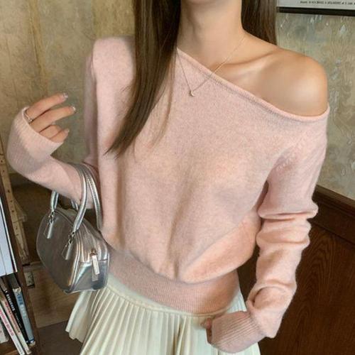 [다잇템]여자 어깨 벌룬 롱슬리브 미니멀리즘 니트