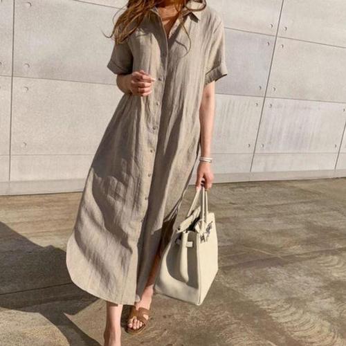 [에이치플러스몰]여성 린넨 셔츠 롱원피스 반팔 데일리