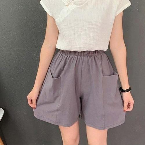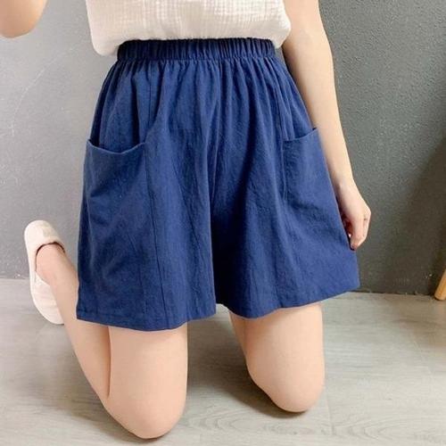녕동 여성 면 마 린넨 반바지 캐주얼 와이드핏 펀칭 4부 5부 팬츠 여름 A라인 숏바지
