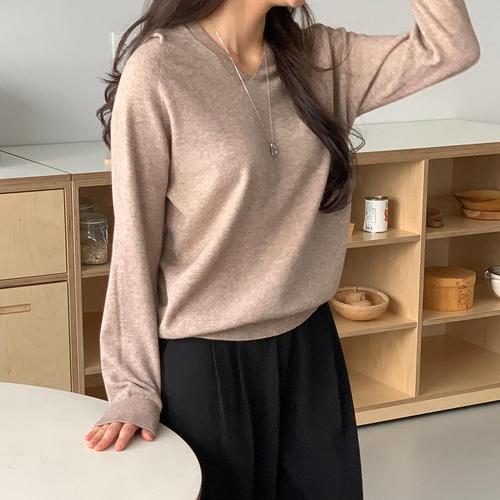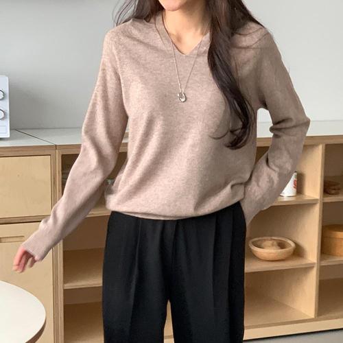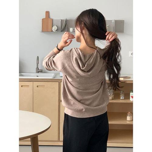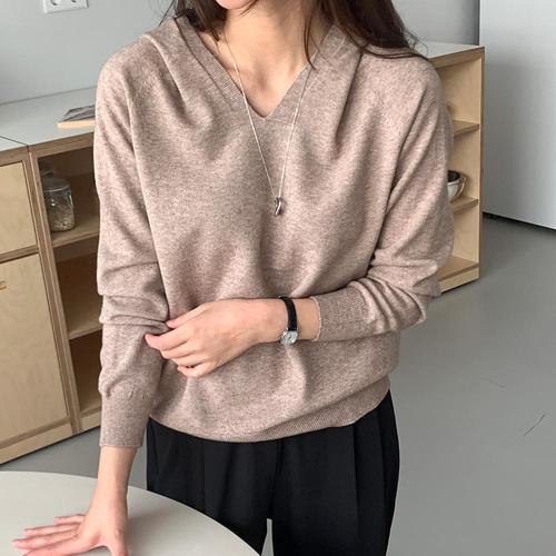 [샵앤]여성 베이직 데일리 무지 후드 니트 티셔츠 21DS-WKN-4886-브라운
