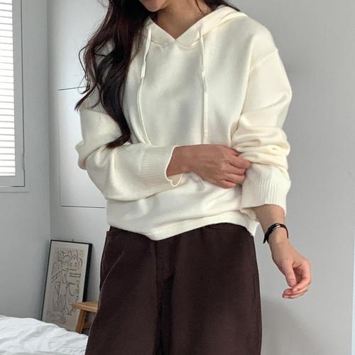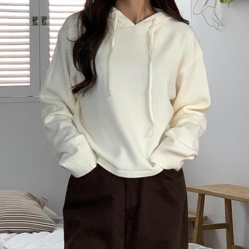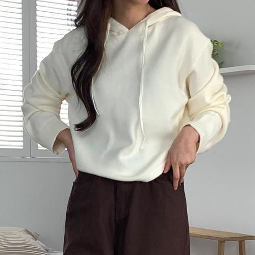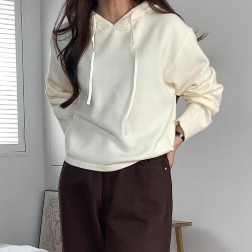 [샵앤]여성 베이직 데일리 무지 후드 니트 티셔츠 21DS-WKN-4886-아이보리