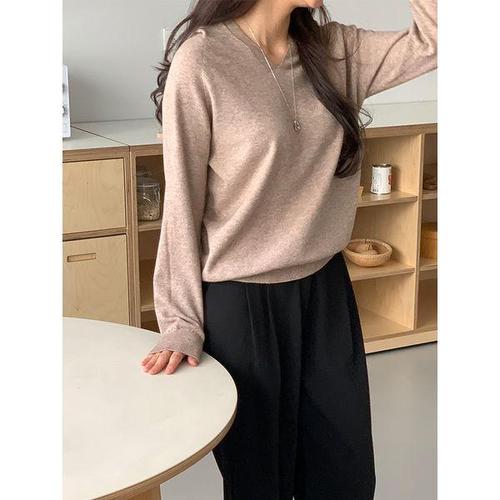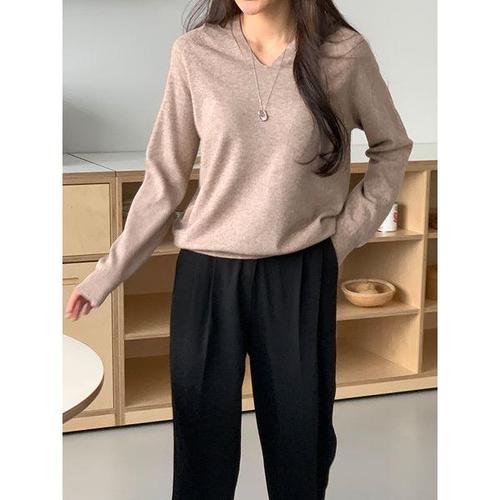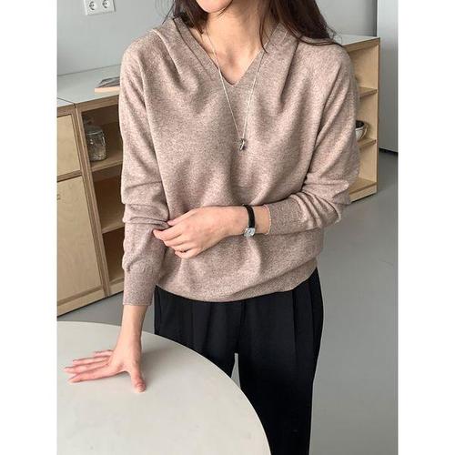 [샵앤][샵앤] 여성 베이직 데일리 무지 후드 니트 티셔츠 21DS-WKN-4886-브라운