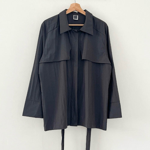 |KSJ43CC|첸네이 재킷 주름원단 여성 가을바바리 카라넥