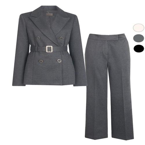 [비비드시크릿가너]SET 여성 더블버튼 겨울 정장 벨티드 자켓+팬츠 세트