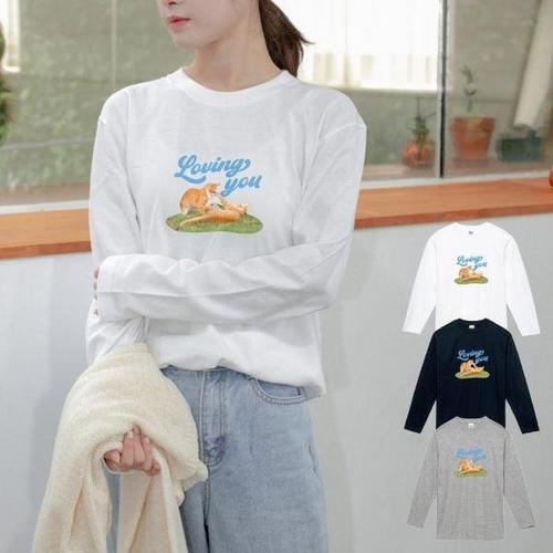[VY] 여자 롱슬리브 봄티 하트 love U넥 나염 티셔츠
