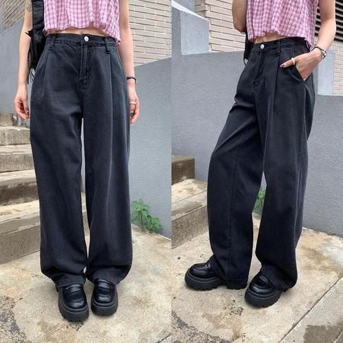 [신상오픈런]여성 캐주얼 더블핀턱 코튼 일자핏 블랙진 청바지
