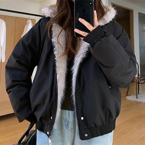 턴키 여성용 후드퍼 인조밍크 하프 야상 패딩 2301