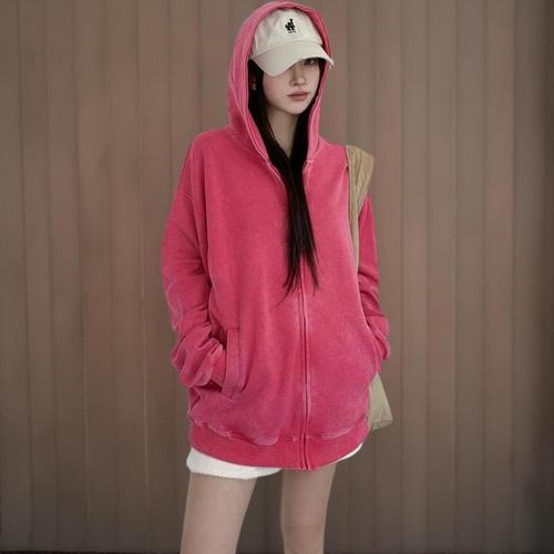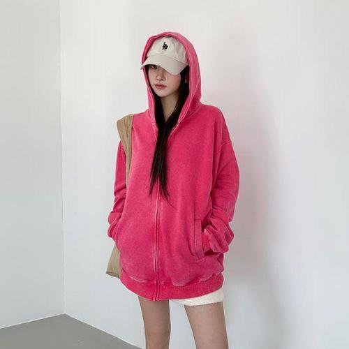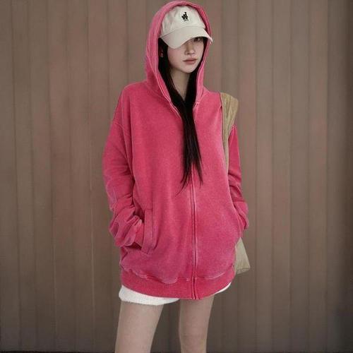 [신상오픈런]여성 루즈핏 후드 집업 코튼 스트리트 패션 피그먼트