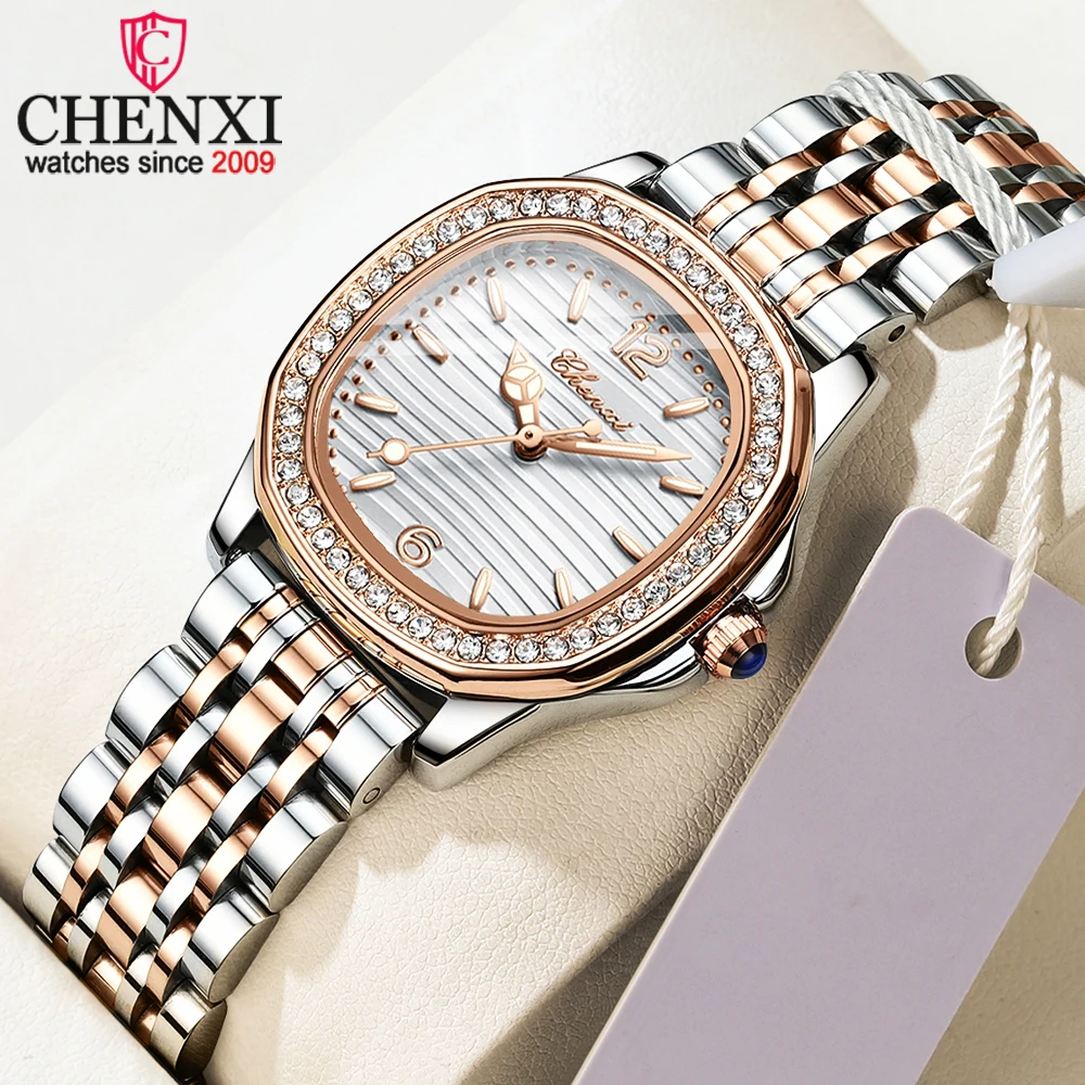 첸시 우아한 고급 여성용 쿼츠 손목시계 고품질 스테인리스 스트랩 방수 드레스 시계 공식 행사용