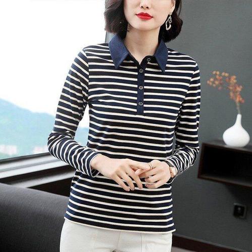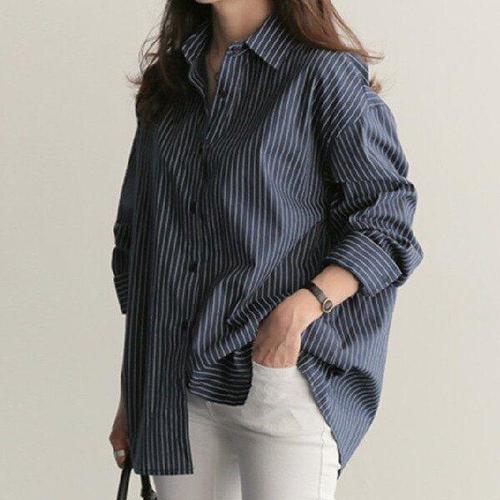 [신상오픈런]여성용 스트라이프 패턴 면혼합 여유핏 셔츠 블라우스