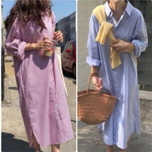 [셀러허브_여성트랜드패션]ONM sh스타일 여성용 스트라이프 롱셔츠남방 스트라이