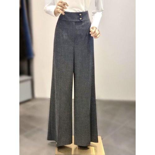 [옷자락] 여성 정장 바지 뒷밴드 비조 단추 핀턱 일자 슬랙스