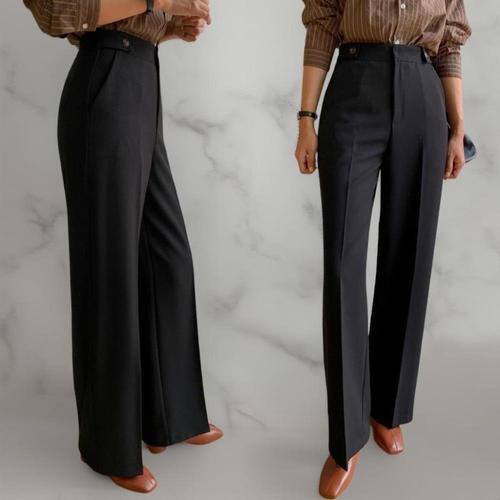 높은 허리 여성 정장 바지 스트레이트 사무실 숙녀 한국 패션 바지 캐주얼 버튼 느슨한 여성 검은 바지 새로운 2025