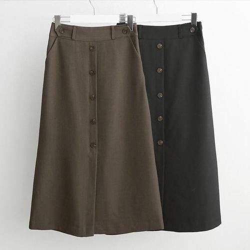 [다잇템_패션]여성 긴치마 슬릿 단추 고무줄 정장스커트