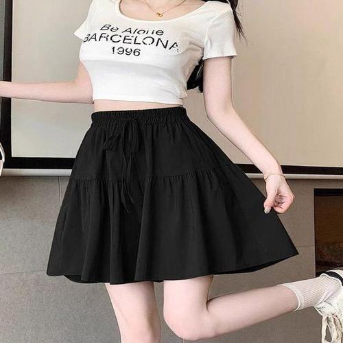 여성용 빅 사이즈 허리 밴딩 스판 반바지 스커트 봄가을 A라인 치마바지