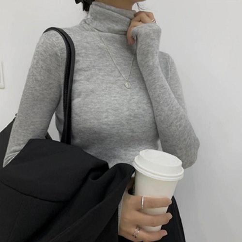 따뜻한 여자 니트 폴라 티셔츠 골지 기모 겨울 데일리