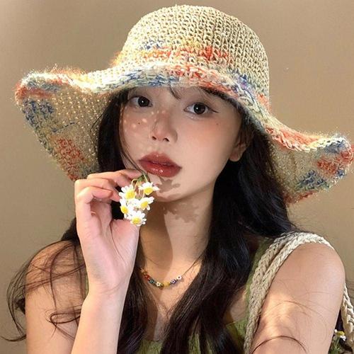 여성 봄 여름 해변 컬러풀 털실포인트 밀집 버킷햇 WFH0N1A