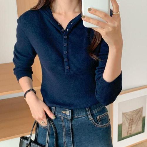 [옷자락]여자 잔골지 잔버튼 후드티 롱슬리브 가을 울 니트
