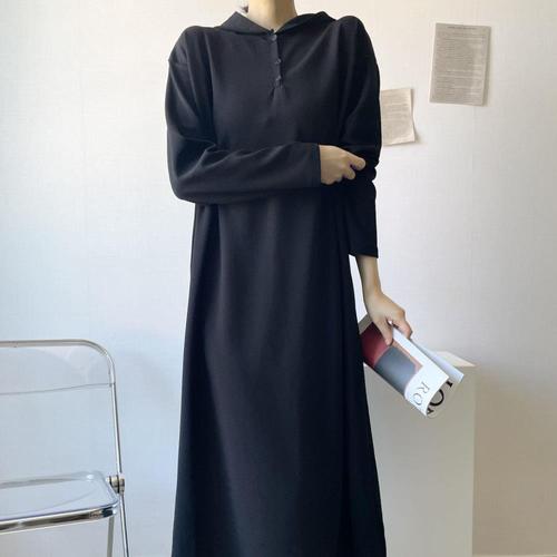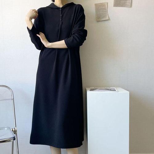 옷자락 / 여자 가을 등원룩 휘뚜루 반오픈 후드 긴팔 롱원피스