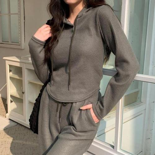 [다잇템_패션]여성 고무줄 롱슬리브티 바지 보온 후디 세트