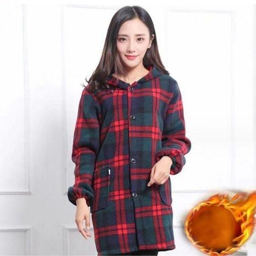 [에이치플러스몰]여성 플리스 체크 캐주얼 벨벳 후드 코트 자켓 간절기