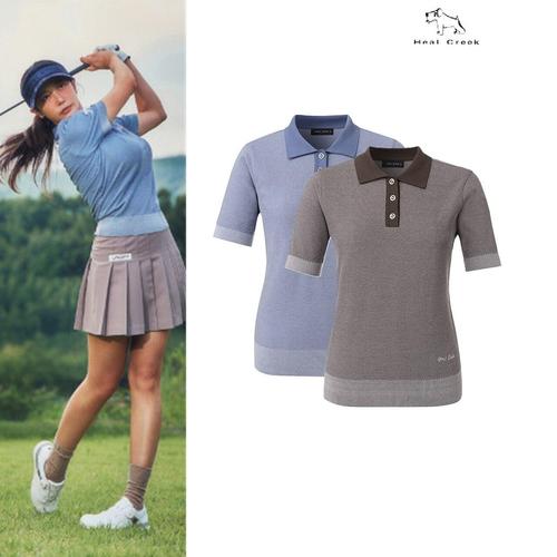 [힐크릭]여성골프웨어 골프니트 헨리반팔카라스웨터