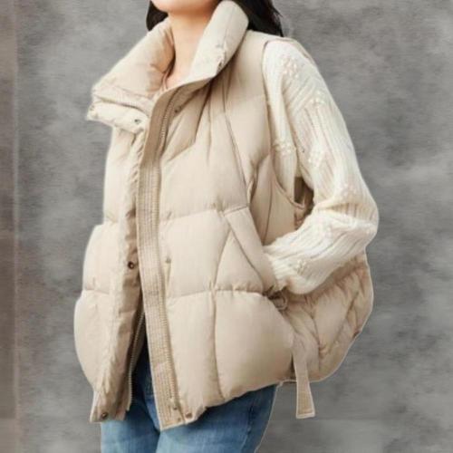 W20918 구스다운 벨트 하이넥 슬림 패딩 조끼 거위털