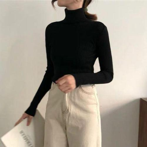 캐주얼 여성 겨울 목 폴라 골지 니트 긴팔 티셔츠