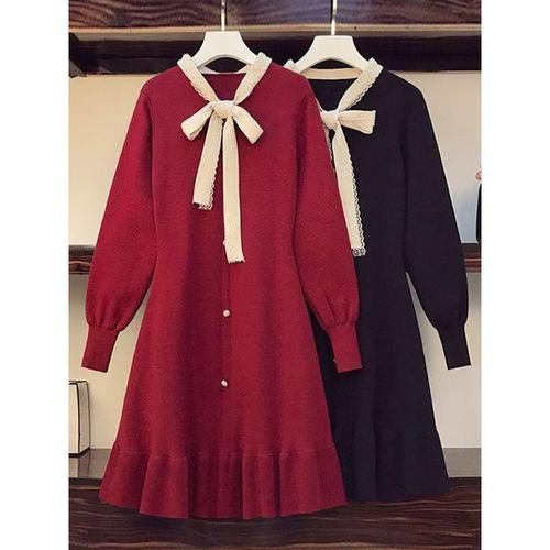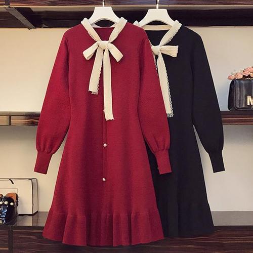 [넬리]레이스 리본타이 니트원피스_NC3OP003