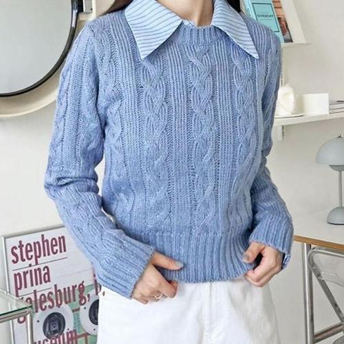 [셀러허브_여성트랜드패션]ONM 꽈배기 여성 니트 가을 겨울 긴팔 여자 니트티