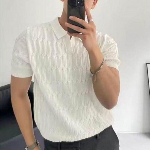 [셀러허브_여성트랜드패션]니트 훈남룩 상의 반팔 카라티 남성 남자 데일리