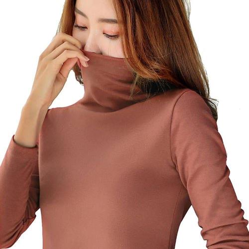 앨오앤지 여성 부드럽고 따뜻한 반목 이너 니트 무지 긴팔 티셔츠