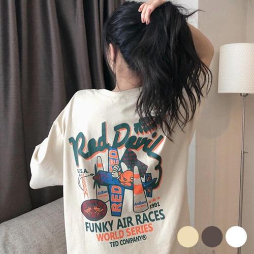 라운드티셔츠 캐쥬얼 오버핏 반팔 박스티 여성의류 WFKY16C