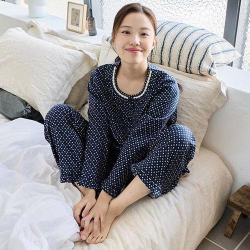 [알콩단잠]국내생산 여자잠옷 도트무늬 파자마 순면 홈웨어 라운지웨어