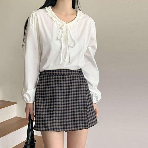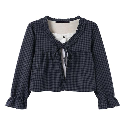 [미니멈 에브리데이]러블리 프릴 체크 레이어드 블라우스 (EB4BA001D)