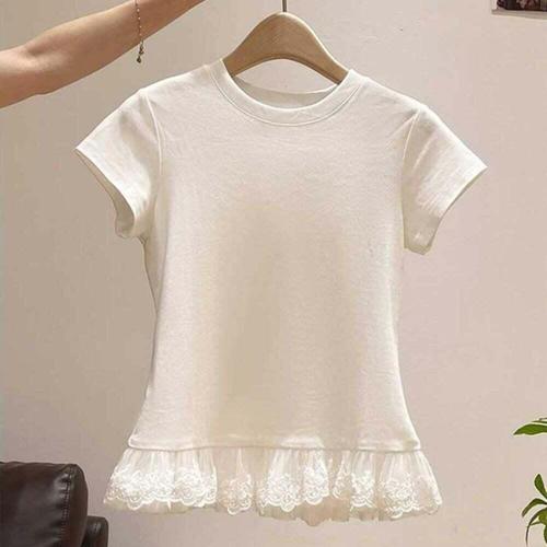 [셀럽하우스]밑단포인트 RNUD2227 레이스프릴 디테일 깔끔한 기본반팔티셔츠