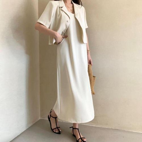 bns 롱나시와 블레이저 코디셋업 세련된 원피스 재킷 세트 WFLRN7V