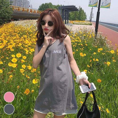 [셀럽하우스]여른 ZSAX7506 여성 롱나시 힙커버 민소매 레터링박스티 시원한