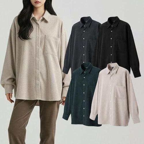 [셀러허브_여성트랜드패션]오버핏 여성코듀로이셔츠 가을 겨울 골덴남방 롱셔츠