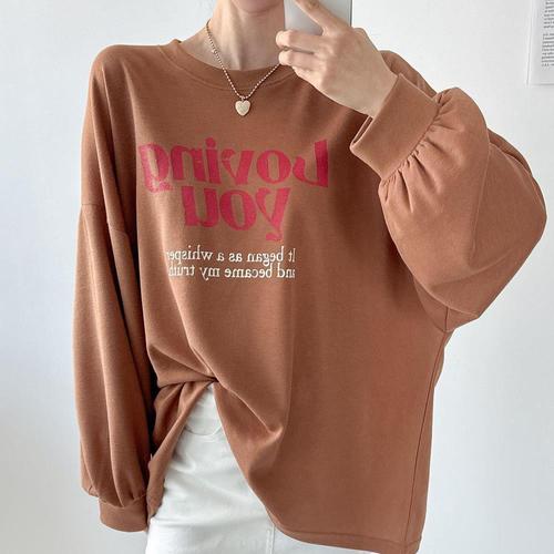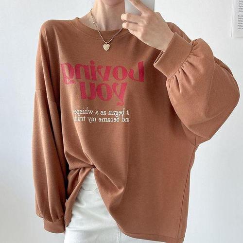 [신상오픈런]여성용 루즈핏 퍼프 소매 라운드 티셔츠 가을 레터링 면티