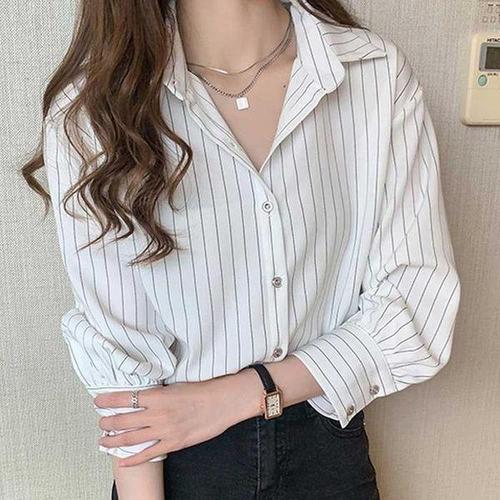 [셀러허브_여성트랜드패션]ONM 데일리 스트라이프 셔츠 블라우스 루즈핏 긴팔 남