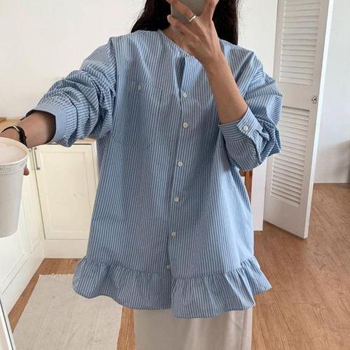 [옷자락]여자 코튼 스트라이프 루즈핏 카라넥 남방 셔츠