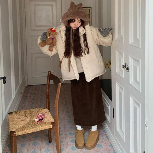 [에어플레인]벨벳 골덴 코듀로이 트임 밴딩 롱 스커트(2color)