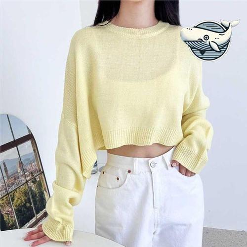 [에이치플러스몰]트렌디 여리핏 크롭 니트 긴팔티 세련된 여름