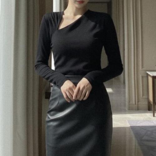 [옷자락] 여성 언발란스 트임 슬림핏 긴팔 티셔츠 봄 여름용